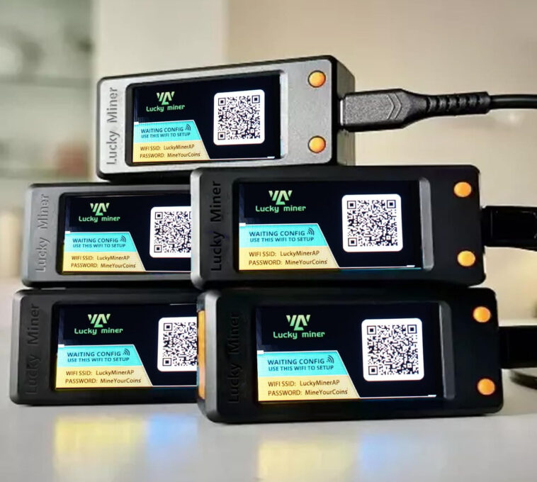 L’utilisateur a juste besoin de numériser le code QR sur l’écran pour configurer le Wi-Fi et entrer une adresse Bitcoin (ou un autre jeton), et à partir de là, le «Lucky Miner» essaiera automatiquement d’exploiter les crypto-monnaies. Une autre option consiste à se connecter à l’appareil avec SSID «LuckyMineap» et le mot de passe «Mineyourcoins».
