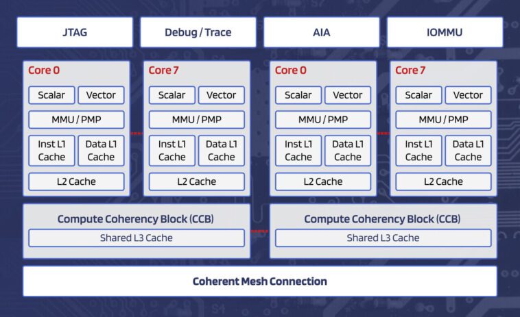 La société a également présenté Scalable Coherent Interconnect, Interrupt Controller et IOMMU IP pour la création de sous-systèmes de calcul basés sur les cœurs RISC-V susmentionnés, ainsi que les cœurs Vector RISC-V ciblés par l’IA et l’IP de calcul matriciel. L’équipe de conception aurait déjà travaillé sur les puces de serveur ThunderX2 de Marvell.