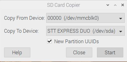 Sur le Raspberry Pi, nous cliquons maintenant sur le menu démarrer> « Accessoires » et sélectionnez le « Copieur de carte SD«. Ici, nous choisissons notre partition racine et le disque dur sur lequel l’image doit être transférée.