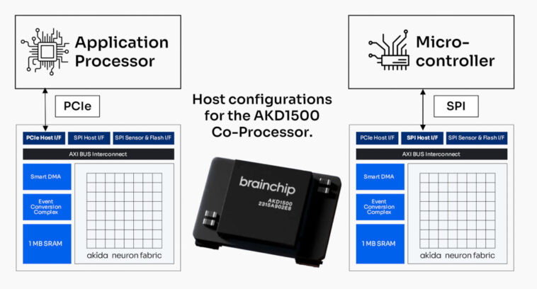 Le BrainChip AKD1500 tire parti d’une technologie neuromorphique basée sur les événements, similaire à celle de son prédécesseur AKD1000. Ce coprocesseur utilise des réseaux neuronaux à spikes (SNN) permettant des inférences en temps réel, bien plus efficaces que les puces d’IA classiques. Parmi ses principales innovations, on note la connexion via des interfaces PCIe et SPI, permettant au AKD1500 de se connecter à une large variété d’hôtes. Cela englobe aussi bien des processeurs d’application fonctionnant sous Linux que des microcontrôleurs avec des ressources plus limitées, tels que les architectures x86, Arm ou RISC-V.