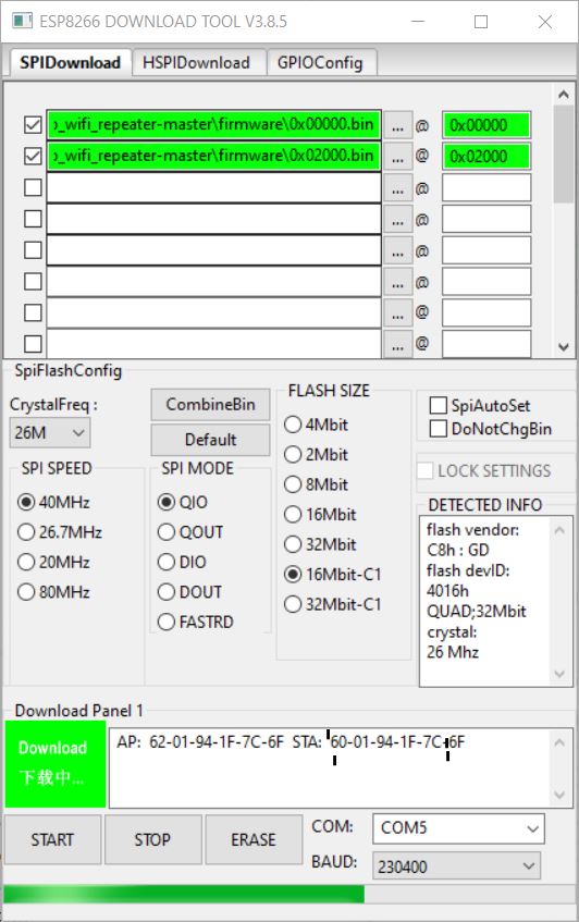 pip install esptool esptool.py --port /dev/ttyUSB0 write_flash -fs 4MB -ff 80m -fm dio 0x00000 firmware/0x00000.bin 0x02000 firmware/0x02000.bin