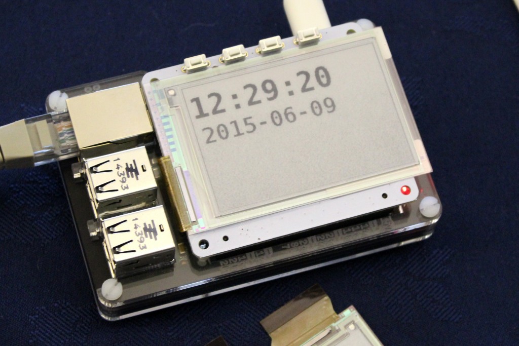 La liste complète des ateliers est disponible sur les Digimakers page atelier événementiel et inclus la programmation de robots et de jeux Lego Mindstorm. Je n’ai pas eu beaucoup de temps pour me promener entre les ateliers mais j’ai pu parler à Colin Deady (@ethicalwebsites) qui tenait un stand. Il avait un PAPiRus ePaPer HAT par PiSupply à l’affiche :
