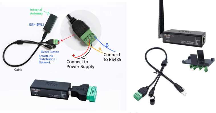 Elfin EW11/EW11A est une petite unité Wi-Fi vers RS485 avec prise en charge Modbus TCP/IP qui fonctionne soit dans la plage d’entrée 5 à 18 V CC (EW11) soit dans la plage d’entrée 5 à 36 V CC (EW11A).