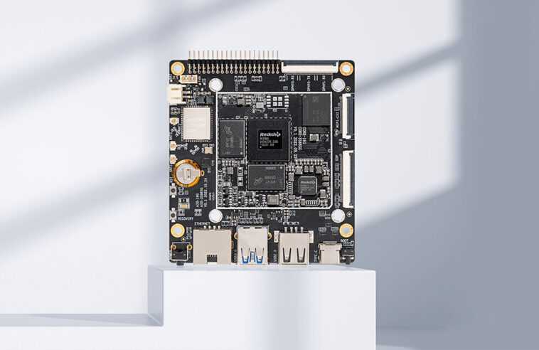 Mis à part le connecteur Ethernet, qui, je suppose, peut être retiré sur demande, la carte semble être conçue pour être aussi fine que possible, ce qui devrait la rendre adaptée aux projets et produits nécessitant des performances élevées dans un facteur de forme mince comme la robotique, le numérique signalétique, casques de réalité virtuelle, etc…