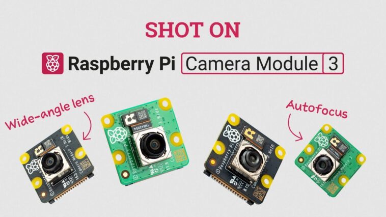 Le module caméra Raspberry Pi 3 est doté d’un capteur Sony IMX708 de 12 mégapixels et offre une mise au point automatique rapide, ce qui facilite la capture d’images nettes. Disponible en variantes standard et grand angle (champ de vision de 120 degrés), ainsi qu’en versions avec et sans filtre infrarouge (NoIR), il convient aussi bien à la photographie de jour que de nuit avec éclairage infrarouge. De plus, il prend en charge la vidéo haute définition à 50 ips et dispose du mode HDR (High Dynamic Range).