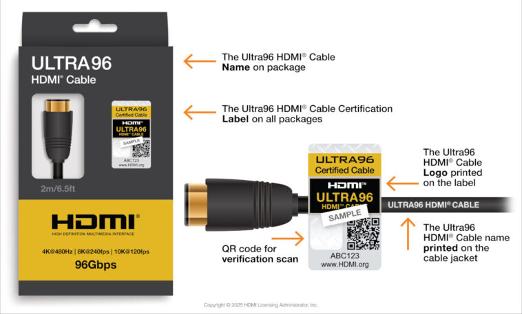 Le HDMI Forum et VESA ont annoncé respectivement les prochains HDMI 2.2 et DisplayPort 2.1b au CES 2025, principalement pour introduire de futurs câbles prenant en charge une bande passante plus élevée allant jusqu’à 96 Gbps pour le câble HDMI Ultra96 et 80 Gps pour les câbles DP80LL.