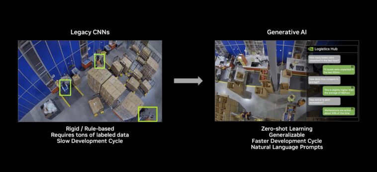 Le développement d’un modèle CNN prend beaucoup de temps, car vous devez généralement fournir de nombreuses données pour entraîner votre modèle. Il est plus rigide avec des fonctionnalités fixes, car il n’est pas capable d’apprendre par lui-même. L’IA générative ne nécessite pas de formation supplémentaire, ni ce que NVIDIA appelle « l’apprentissage zéro-court », et de tels modèles peuvent apprendre à reconnaître des choses qu’ils n’avaient jamais vues auparavant.