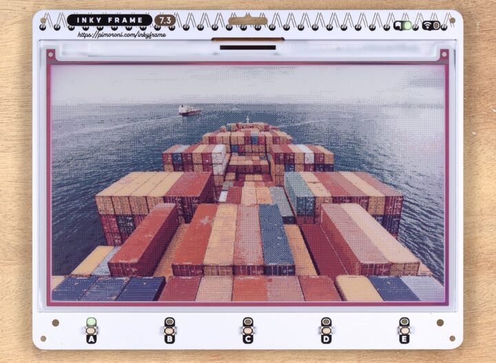 L’Inky Frame 7,3″ est un écran ePaper Pico 2 W doté d’un écran E Ink de 7,3 pouces avec une résolution de 800 x 480 et une prise en charge de 7 couleurs. Les autres fonctionnalités incluent cinq boutons équipés de LED, deux connecteurs Qwiic/STEMMA QT, un emplacement pour carte microSD et un connecteur de batterie avec fonctionnalité d’économie d’énergie.