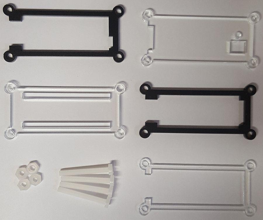 Ensuite, nous devons ajouter les pièces acryliques restantes à la pile. Placez d’abord la pièce noire, puis la pièce transparente.