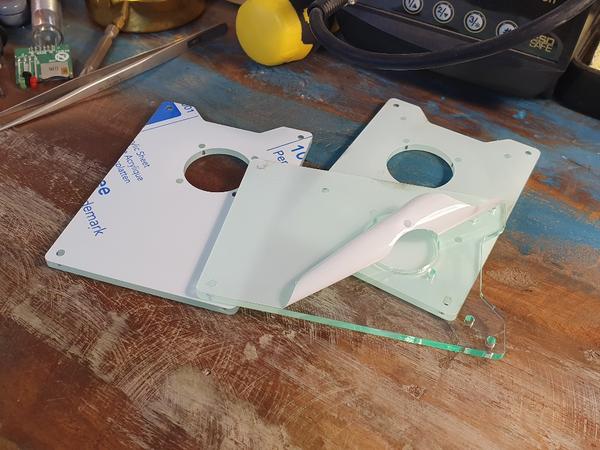 Étape 1 – Prenez votre boîte! Vous devriez trouver 3 couches de plexiglas, un sac de fixations et deux ventilateurs 5V