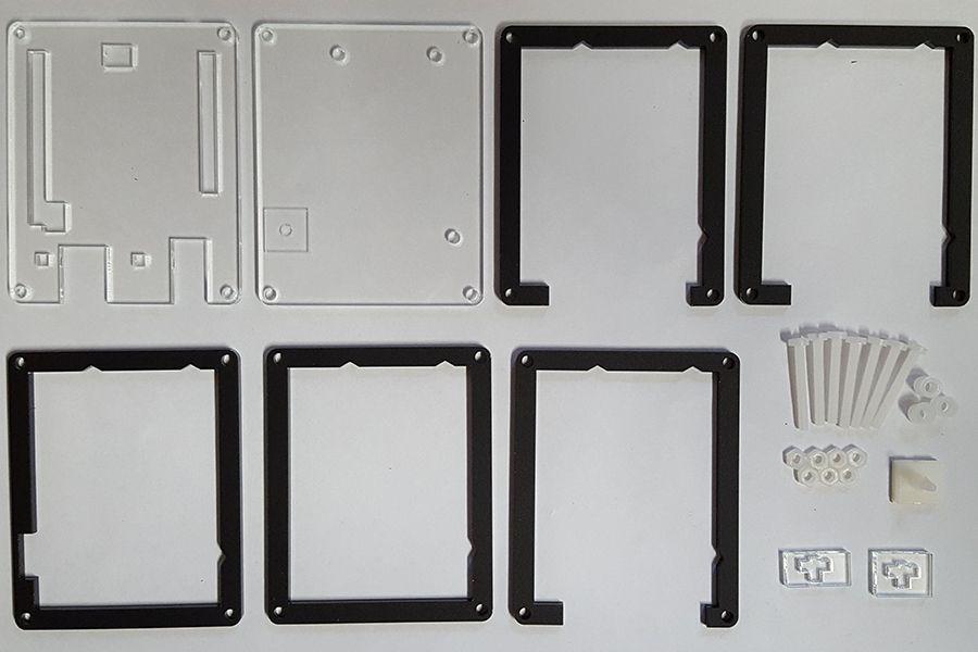 Suivez ces images en vérifiant les pièces et l’orientation des pièces en acrylique. Vous verrez une image avant et après pour chaque étape. Assurez-vous que toutes les pièces sont prêtes, comme illustré dans l’image précédente.