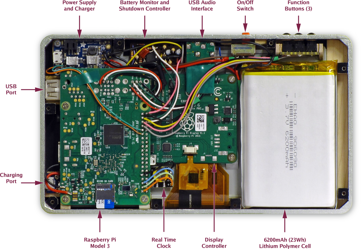 Stefan Vorkoetter, un amateur qui s’emballe avec toutes sortes d’électronique et de trucs geek, des avions télécommandés aux sliderules vintage, voulait une tablette qui n’était pas contrainte au niveau logiciel comme de nombreuses tablettes Android semblent l’être. Il a été présenté au Raspberry Pi et a décidé qu’il ferait un excellent appareil tablette. Il a couplé le Pi avec l’écran tactile officiel, puis ajouté d’autres composants tels qu’un Adafruit Powerboost 1000C, une batterie LiPo 6200mAh, une horloge en temps réel, les tripes d’un adaptateur audio USB et une carte d’amplificateur. Il a façonné un magnifique cas pour elle en bois et ce que je pense est en plexiglas et rentrez soigneusement tous les composants à l’intérieur. Il estime entre 4 et 12 heures d’autonomie, selon l’utilisation et le tout à 484 g (un peu plus de 17 onces). Une tablette vraiment merveilleuse dont vous pouvez en savoir plus et voir charges de construire des images, ici.