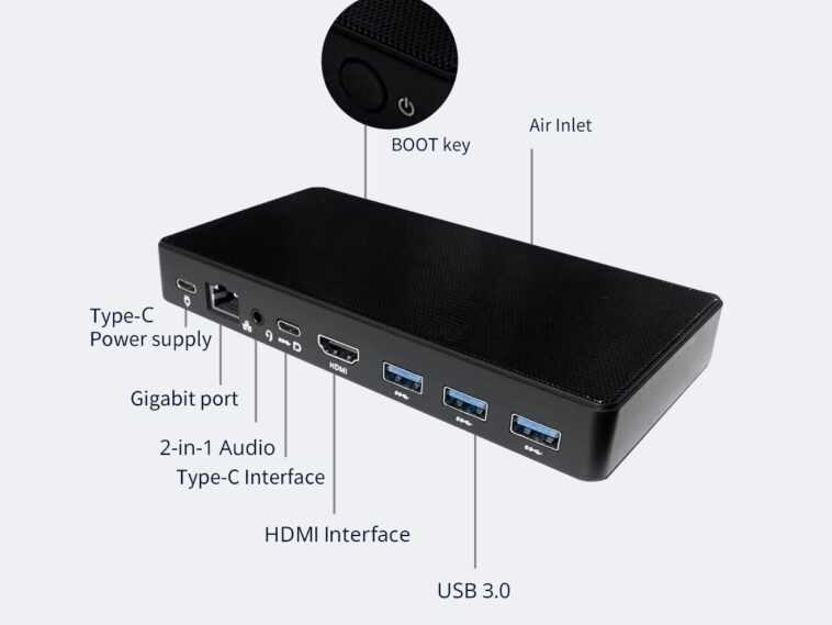 L’ordinateur est livré avec 8 Go de RAM, jusqu’à 256 Go de SSD, et le panneau arrière est livré avec deux ports USB Type-C, un pour l’alimentation uniquement, un port Ethernet Gigabit, une prise casque 3,5 mm, un port HDMI et trois ports USB 3.0. . Vous trouverez toujours le bouton d’alimentation sur le panneau avant et la connectivité sans fil est prise en charge via un module WiFi 6 et Bluetooth 5.2.