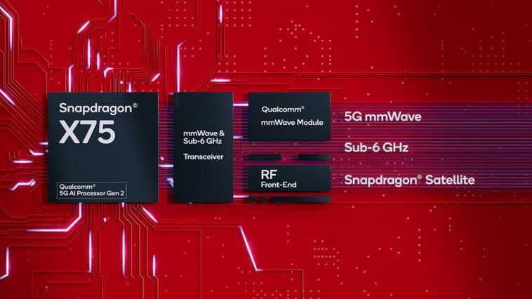 Qualcomm Snapdragon X75 est le dernier système modem-RF 5G de la société offrant une connectivité avancée 5G aux smartphones, PC, IoT industriel, véhicules et routeurs d’accès sans fil fixe (FWA) 5G.