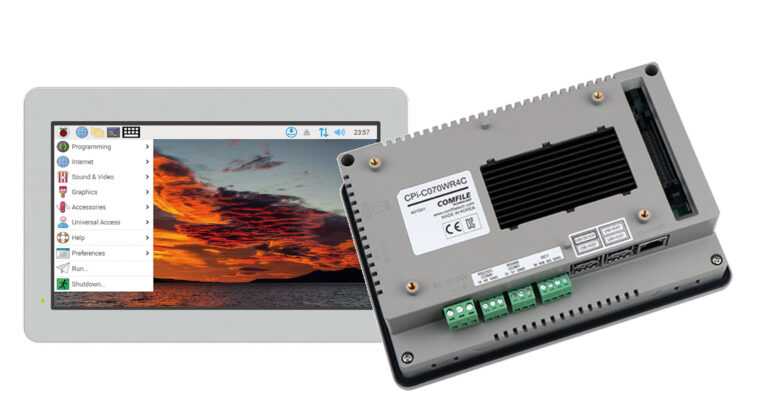 Le panel PC ComfilePi CPi-C070WR4C est livré avec une version légèrement modifiée du système d’exploitation Raspberry Pi, ou vous pouvez le réinstaller vous-même en suivant les instructions de la documentation qui comprend également certains détails matériels tels que le brochage de l’en-tête GPIO et certains didacticiels logiciels pour CODESYS. , NODE-RED, et plus encore.