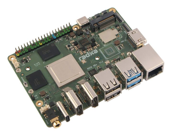 Le Radxa ROCK 5B+ (« ROCK 5B Plus ») est une mise à niveau du SBC ROCK 5B Pico-ITX alimenté par Rockchip RK3588 avec le même facteur de forme mais diverses modifications, notamment un passage de LPDDR4x à LPDDR5, un flash eMMC intégré en option et un module WiFi 6 et Bluetooth 5.2 intégré au lieu d’un module connecté via un connecteur M.2 Key-E.