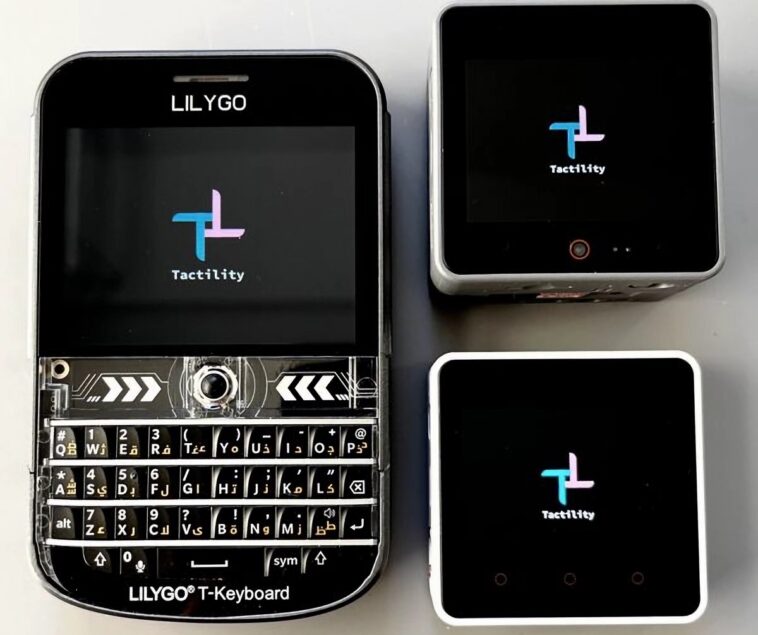 Tactility est conçu pour fonctionner sur n’importe quel appareil basé sur ESP32 doté d’un écran tactile, car les pilotes (écran, toucher et carte SD) peuvent être implémentés pour n’importe quel matériel. Les appareils ESP32-S3 sont « la meilleure option » en raison de leurs performances et de leur plus grande mémoire. La série LILYGO T-Deck est fortement recommandée pour son clavier intégré et son écran de grande taille. Des configurations prédéfinies sont disponibles pour LILYGO T-Deck Plus, LILYGO T-Deck, M5Stack Core2 et M5Stack CoreS3.