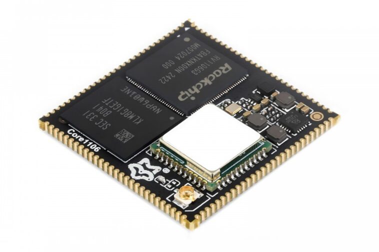 Luckfox a récemment lancé le système sur module Core1106 Core Board Rockchip RV1106 avec une taille compacte de 30 x 30 mm, 112 broches crénelées conçues pour être soudées sur un PCB, ainsi qu’un module WiFi 6 et Bluetooth 5.2 en option et un connecteur d’antenne IPEX 1.0.