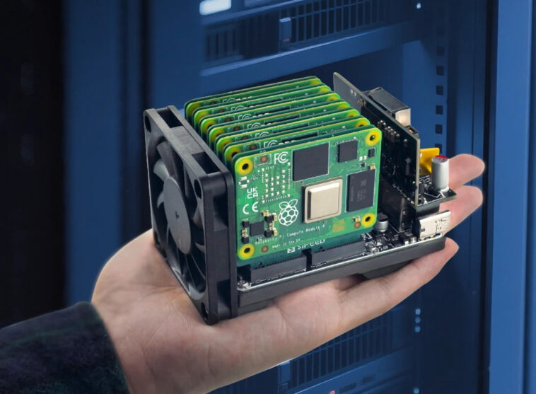 Les tests pratiques de Jeff Geerling révèlent les contraintes réelles du système malgré ses 7 slots théoriques. Ses expérimentations avec modules Raspberry Pi CM5 démontrent qu’il est recommandé de n’utiliser que 4 à 5 CM5 simultanément en raison de problèmes énergétiques et thermiques, particulièrement lors de connexion SSD M.2 sur chaque adaptateur.
