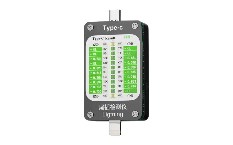 Le détecteur d’insertion de queue de VBEST est un testeur de câble/appareil USB-C et Lightning qui rapporte le courant et la tension « en temps réel » de chaque broche sur son écran intégré pour un débogage et des tests faciles.