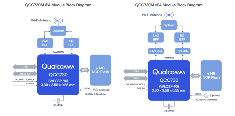Qualcomm a ajouté deux nouveaux modules IoT à sa série de produits de connectivité sans fil : le module WiFi 4 « micro-puissance » Qualcomm QCC730M et le module tri-radio QCC74xM, les deux modules étant conçus pour les maisons intelligentes, les appareils intelligents, les appareils médicaux et les applications industrielles. .