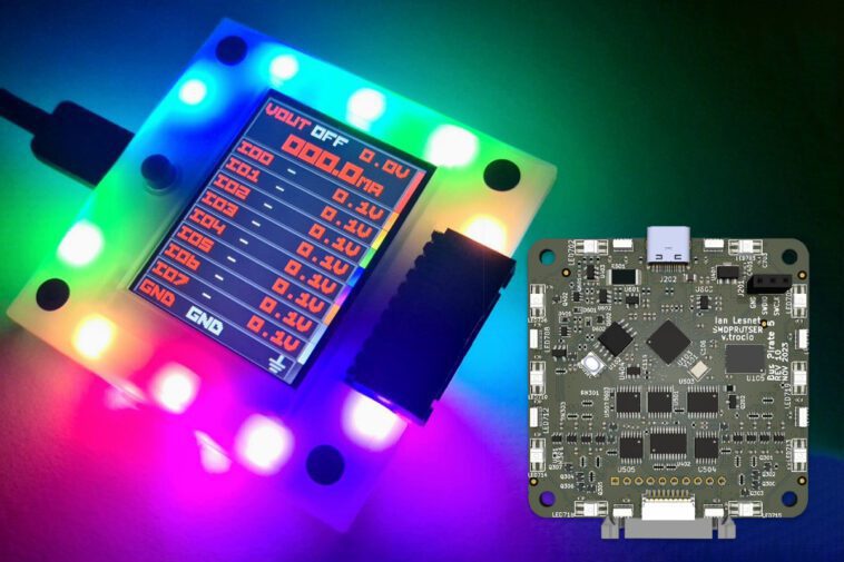 Les appareils sont dotés de broches d’E/S tamponnées avec mesure de tension et de courant, d’une alimentation programmable avec limitation de courant, d’un écran LCD RVB pour l’état et les informations des broches, et d’un connecteur auxiliaire pour la connexion d’analyseurs logiques. Toutes ces fonctionnalités rendent cet appareil utile pour des applications telles que le débogage de circuits, les projets de prototypage et la rétro-ingénierie d’appareils.
