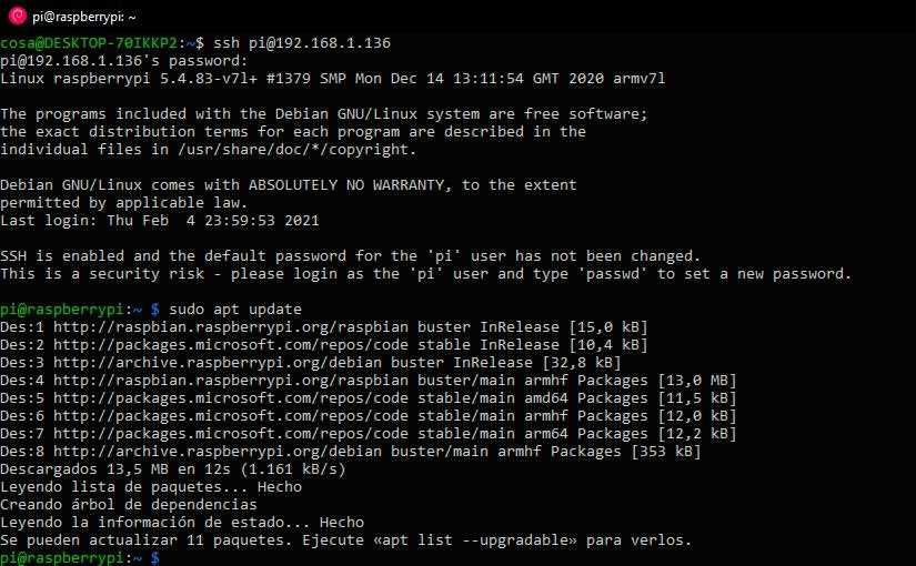 Lorsque nous allons mettre à jour un Linux sur notre Raspberry Pi, il se connecte aux référentiels, qui contiennent des informations sur la dernière version de tous les packages du système d’exploitation. Une fois cela fait, il vérifie les versions des paquets que nous avons installés et nous indique quels paquets nous pouvons mettre à jour. Normalement, dans Raspberry Pi OS, seuls les référentiels du système d’exploitation lui-même apparaissent, mais, sans avertissement, les référentiels Microsoft sont apparus dans la liste des référentiels.