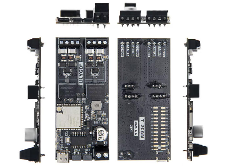 Selon cnx-software, la carte LILYGO T-2CAN représente une avancée par rapport au modèle précédent TTGO T-CAN485, en intégrant un microcontrôleur ESP32-S3 plus performant. Ce dispositif présente deux interfaces isolées de bus CAN, renforçant ainsi ses capacités pour des applications variées, allant du diagnostic automobile à la surveillance industrielle et à la connexion au cloud via CAN.