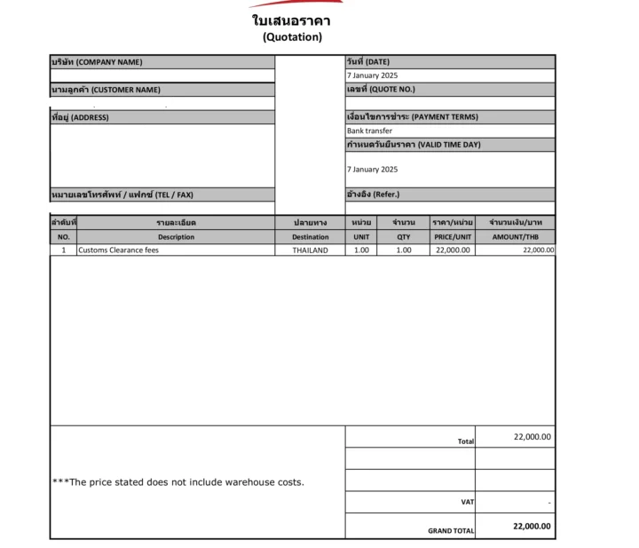 Veuillez trouver l’autre agent pour effacer ce formulaire d’expédition, les détails des douanes thaïlandaises ci-dessous.