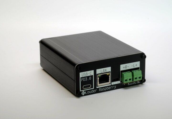 Louder Raspberry Pi intègre la puissance de calcul du Raspberry Pi Zero et les capacités de traitement audio Hi-Fi du DAC TAS5805M de TI dans un boîtier compact en aluminium. L’appareil fournit jusqu’à 25 W de sortie stéréo par canal et est alimenté via un adaptateur USB-C PD3.0 de 65 W+. Il est « destiné à être associé à des systèmes d’enceintes de moyenne à grande taille » et prend en charge à la fois le Wi-Fi et l’Ethernet.