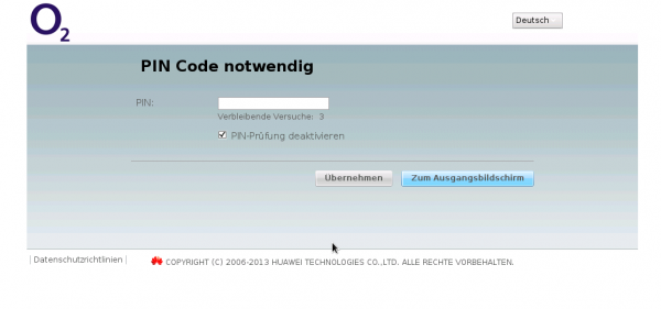 Dans le navigateur du Raspberry Pi, nous appelons l’adresse 192.168.1.1. Si vous êtes toujours connecté au réseau local, vous ne pouvez voir que le panneau du routeur et ne pas accéder à la clé de surf USB. Le moyen le plus simple est (si vous travaillez directement sur le Pi, sans RDV ou VNC), de déconnecter brièvement le câble Ethernet ou la clé Wi-Fi et d’appeler à nouveau la page. Avec mon bâton, j’ai été envoyé à l’adresse 192.168.8.1, qui fonctionnait également avec la connexion réseau existante. Peut-être que cela fonctionne aussi pour vous, cela vaut la peine de l’essayer – sinon, déconnectez-vous simplement du réseau.
