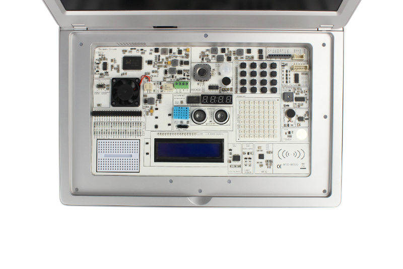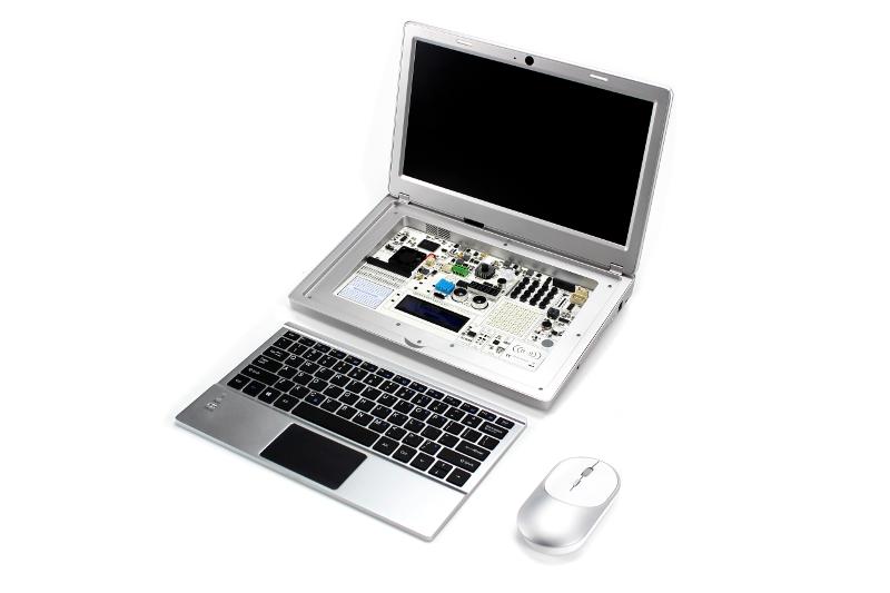 Sous cette unité amovible se trouve une multitude de capteurs, widgets et blinkies pour réaliser des projets.