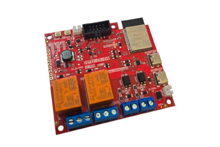 L’ESP32-C5-EVB intègre ses fonctionnalités intéressantes, comprenant deux relais conçus pour fonctionner à 250 V et 10 A, ainsi que deux entrées opto-isolées. Elle se distingue aussi par son chargeur LIPO UPS et son convertisseur de pas-up. Pour faciliter l’expansion, la carte dispose de ports USB-C, d’un connecteur UEXT et de deux boutons pratiques. Cette carte est parmi les premières à exploiter l’ESP32-C5, aux côtés du kit de développement ESP32-C5-DevKitC-1 d’EspressIF et de la carte WT99P4C5-S1 utilisant l’ESP32-C5 comme co-processeur sans fil avec le MCU ESP32-P4.