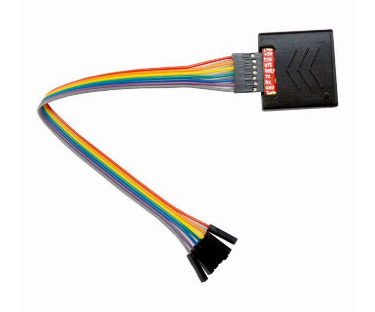 - Sept lignes de signal – +5 V, GND, CTS, RTS, TX, RX, Vref