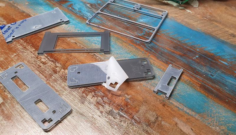 Étape 2 – Retirez les pièces en acrylique de leur support et décollez le film protecteur des deux côtés de toutes les couches, puis nettoyez toute poussière.