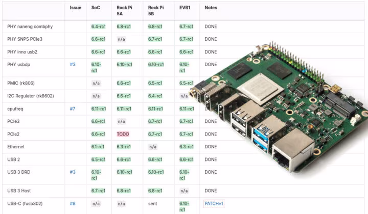 Bien que les SoC Rockchip RK3566 et RK3568 plus simples soient déjà assez bien pris en charge dans Linux principal, davantage de travail est nécessaire pour amont du code, et comme indiqué précédemment dans les articles et commentaires ici, Collabora garde une trace du statut sur Gitlab, et la société a récemment publié un article sur les progrès et les projets futurs liés à la prise en charge Linux en amont pour Rockchip RK3588.