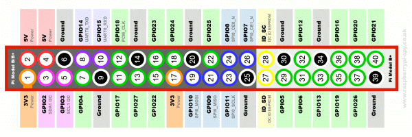Diagramme GPIO en haut de Espion Raspberry Pi