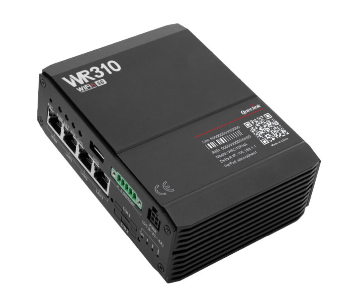 Le routeur cellulaire industriel Queclink WR310 5G et WiFi 6 comprend quatre ports Ethernet Gigabit, un port USB Type-A, un bornier avec RS232 et RS485 et une large entrée 8 à 32 V CC adaptée à la fabrication intelligente, à l’IoT industriel (IIoT) et applications informatiques de pointe.