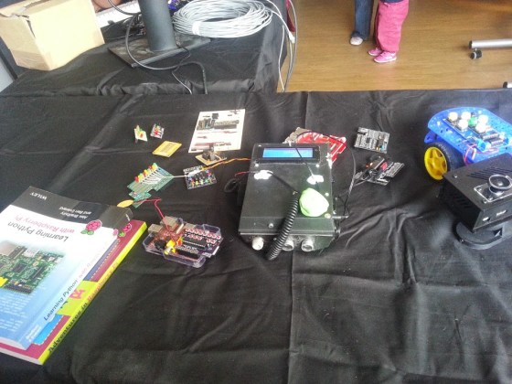 Vous pouvez voir beaucoup de choses ici – mon Picorder est au milieu (je devrais vraiment faire un cas approprié maintenant c’est fini!), La carte PiPiano de Zach Igielman (c’est celle avec tous les boutons rouges – bientôt disponible sur Kickstarter) , quelques RasPiO planches et, bien sûr, TurtlTeck de Ryan Walmsley (qui est un produit robotique autonome fonctionnant actuellement sur Kickstarter).
