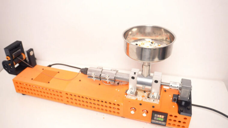 Bien que les spécifications détaillées d’ExtrudeX ne soient pas entièrement publiées en tant que projet de financement participatif, cela n’ôte rien à son potentiel. La machine est propulsée par un unique motoréducteur à courant continu qui entraîne la vis principale à l’intérieur d’un baril métallique. Pour la régulation thermique, elle intègre des bandes chauffantes et un contrôleur de température PID. Les composants additionnels incluent des roulements standards, une source d’alimentation et d’autres accessoires courants. Ses éléments structurels tels que le cadre et l’extracteur de filament sont tous imprimés en 3D, tandis que les pièces nécessitant un support classique sont estimées entre 180 et 250 dollars.