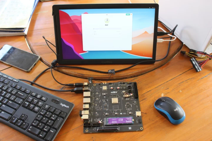 J’ai examiné la carte mère Jupiter mini-ITX avec le système d’exploitation Bianbu basé sur Ubuntu et un châssis mini-ITX NAS Auriga 6 baies en août dernier et les résultats ont été plutôt mitigés. Le système est utilisable pour les applications sans tête avec un stockage Gigabit Ethernet, WiFi 6 et NVMe SSD fonctionnant très bien, et l’emplacement PCIe a également été détecté, mais je n’avais rien pour le tester à part une ancienne carte graphique NVIDIA Geforce qui n’est pas prise en charge. Cependant, même si l’accélération graphique 3D fonctionnait, le score glmark2-es2-wayland était assez faible, les vidéos YouTube n’étaient pas regardables dans Chromium sauf à des résolutions très basses (360p/480p), et aucun des lecteurs USB 3.0 n’était reconnu… Cependant, l’écosystème logiciel RISC-V évolue constamment, alors peut-être que certains de ces problèmes sont déjà résolus.