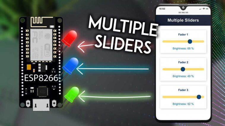 Ce tutoriel montre comment créer un serveur Web avec la carte ESP8266 NodeMCU qui affiche une page Web avec plusieurs curseurs. Les curseurs contrôlent le rapport cyclique de différents signaux PWM pour contrôler la luminosité de plusieurs LED. Au lieu de LED, vous pouvez utiliser ce projet pour contrôler des moteurs à courant continu ou d’autres actionneurs nécessitant un signal PWM. La communication entre les clients et l’ESP8266 se fait à l’aide du protocole WebSocket. De plus, chaque fois qu’il y a un changement, tous les clients mettent à jour leurs valeurs de curseur simultanément.