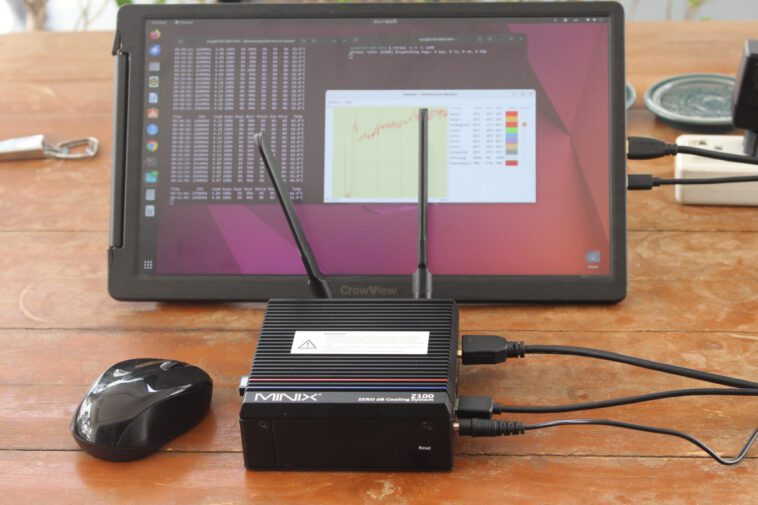 Le mini PC sans ventilateur MINIX Z100-0dB fonctionne très bien avec Ubuntu 22.04 et nous n’avons eu aucun problème avec aucune des fonctionnalités. Comme nous l’avons vu sous Windows, les résultats de référence sont également un peu inférieurs sous Linux à ceux du mini PC GEEKOM Mini Air12 à refroidissement actif avec le même processeur Intel Processor N100 en raison de limites de puissance inférieures, et le SSD n’est pas aussi rapide, mais le MINIX Z100-0dB a aussi ses avantages (outre la conception sans ventilateur) avec de meilleures performances réseau grâce à un port 2,5GbE et un débit WiFi 6 plus élevé proche de 1 Gbps grâce au module sans fil Intel AX201.