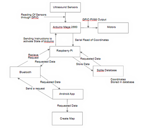 Bien que seule la coque ait survécu aux dégâts d’eau, causés par un trou dans le toit du laboratoire, Gary a décidé de remplir l’intérieur avec de nouveaux équipements robotiques et également un Raspberry Pi 3 pour le contrôler. À l’aide d’un Arduino Mega pour contrôler les moteurs et les capteurs, le Pi était le cerveau central fournissant une interface de contrôle à distance via Bluetooth et enregistrant les données de détection de l’environnement dans une base de données SQLite. Vous pouvez voir le schéma fonctionnel de la configuration au bas de ce post.