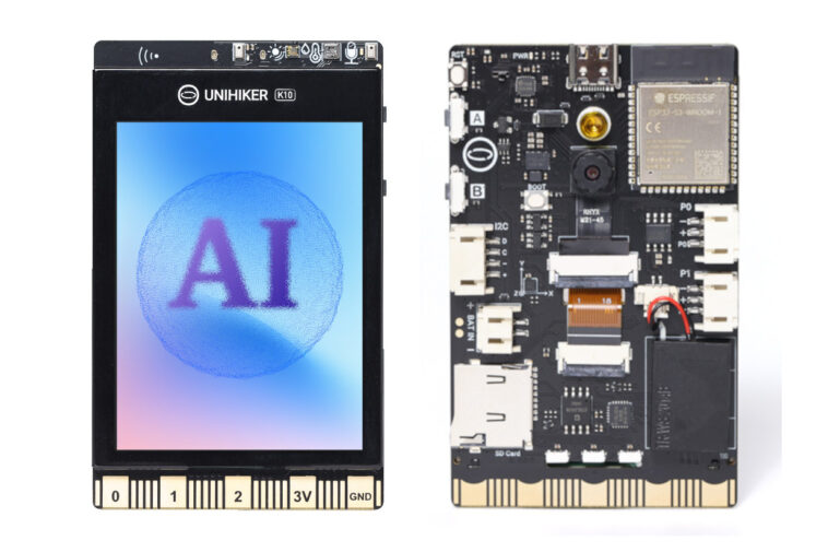 Unihiker K10 est une plate-forme d’éducation STEM à faible coût pour les applications TinyML qui exploite le microcontrôleur sans fil ESP32-S3 avec des extensions vectorielles pour les charges de travail telles que la détection d’image ou la reconnaissance vocale.