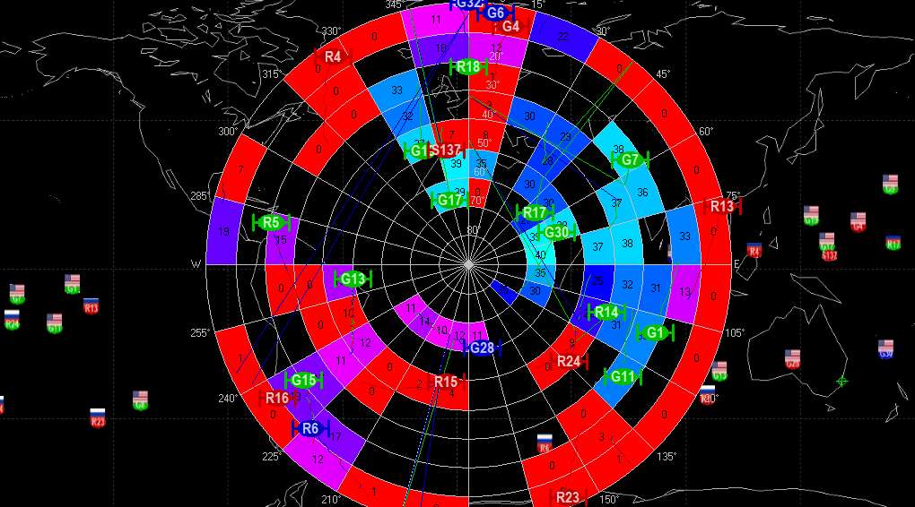 Cette fenêtre vous montrera où se trouvent les satellites ainsi que l’heure.